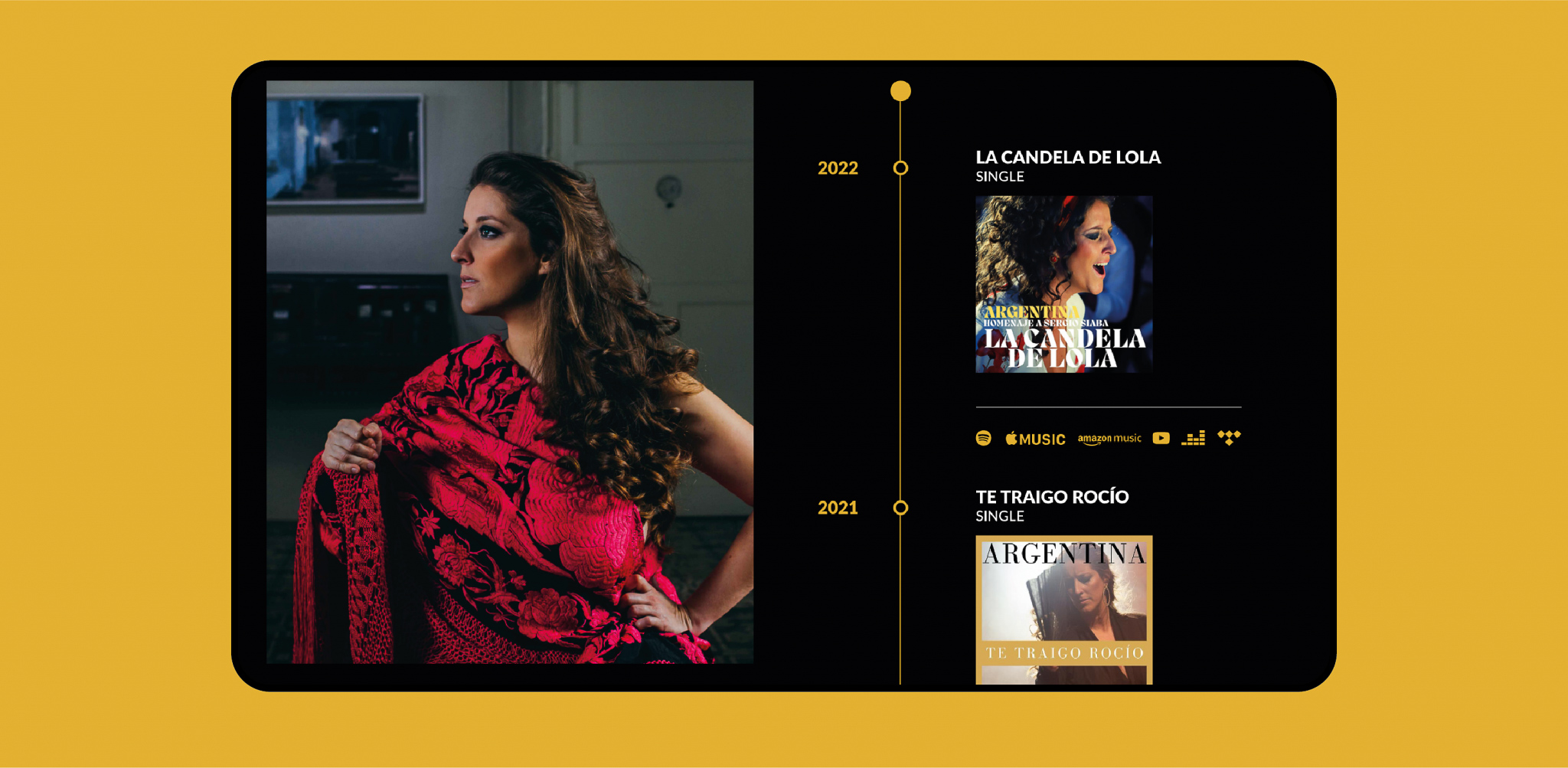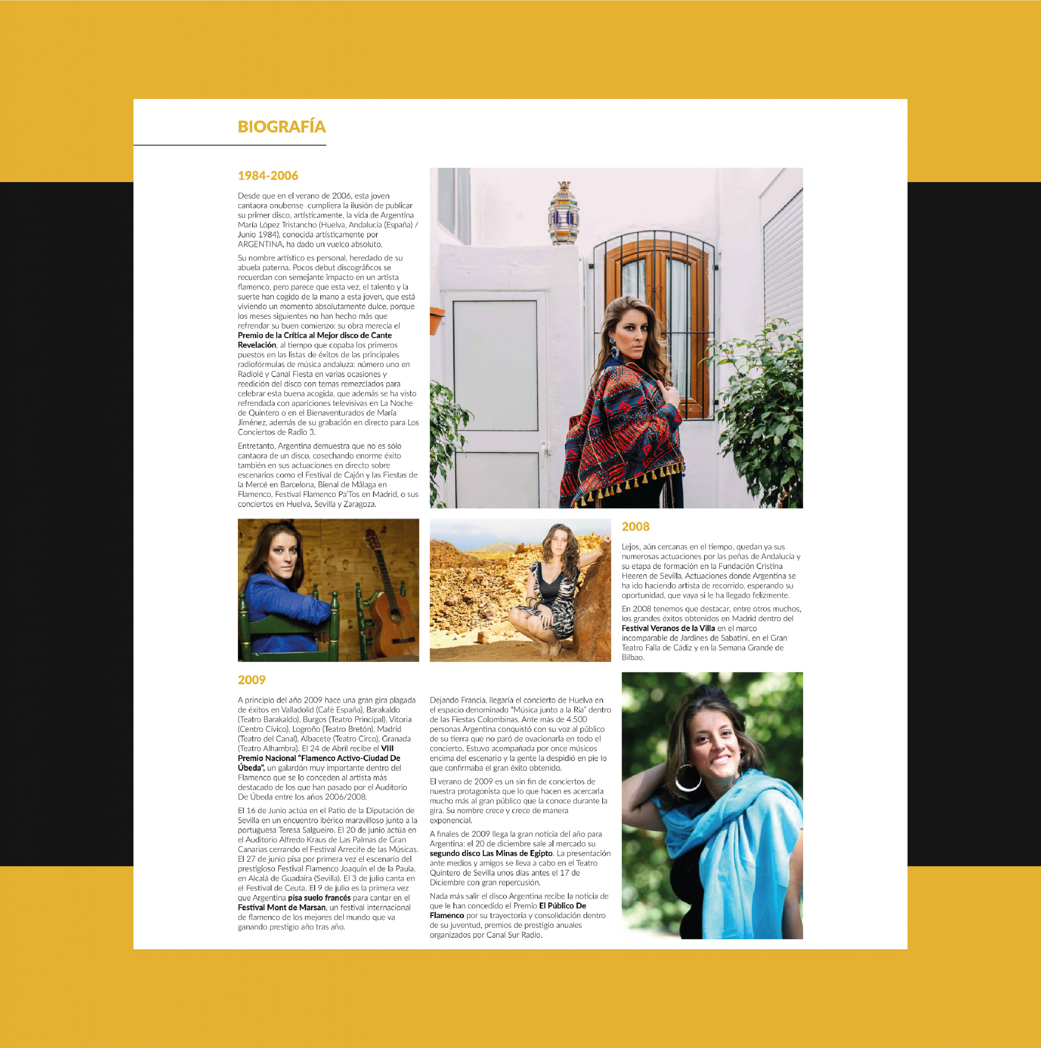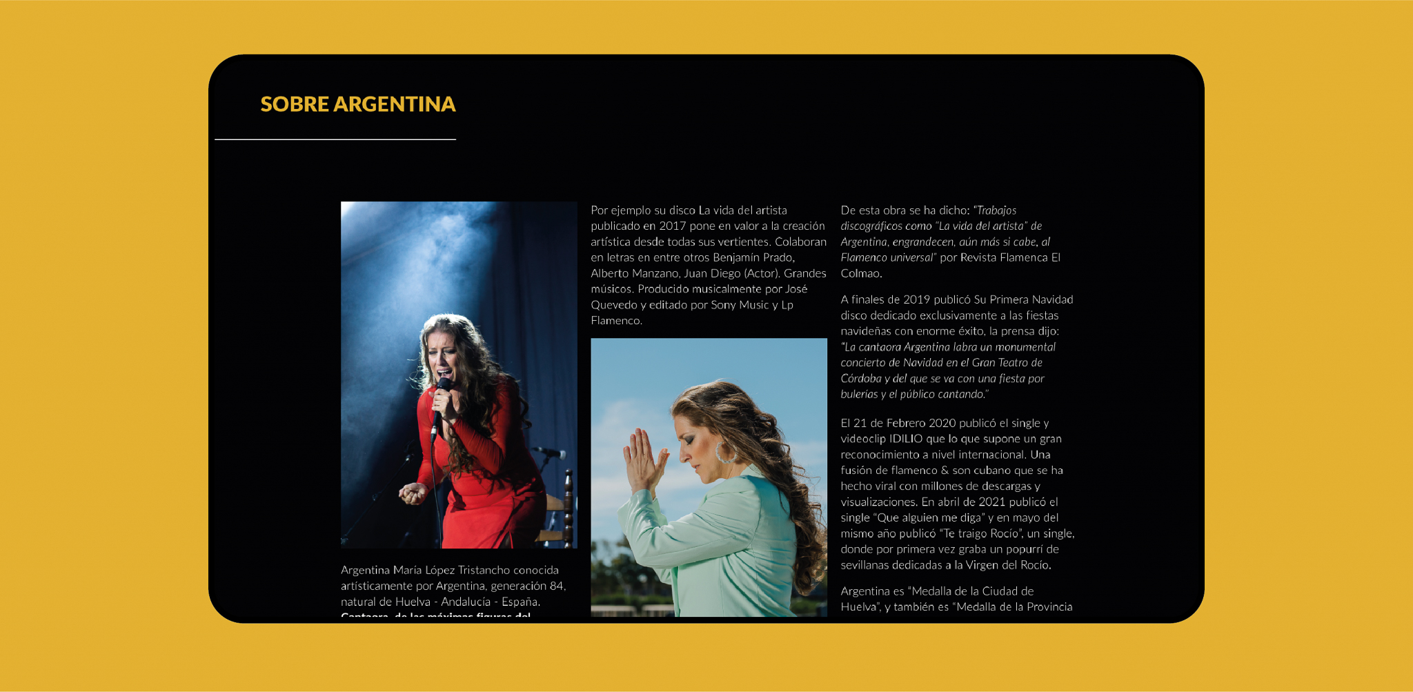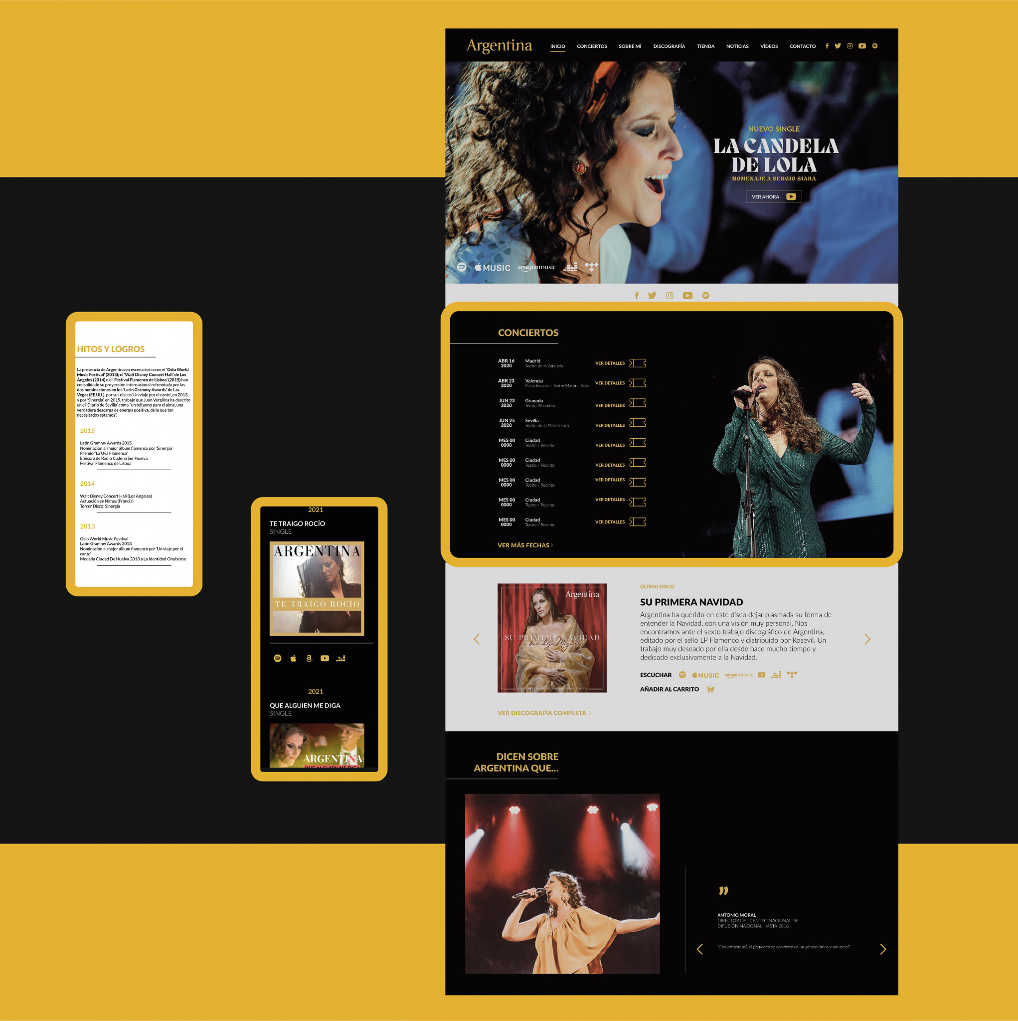diseño web para la cantante de flamenco argentina, incluyendo páginas de eventos, biografía y