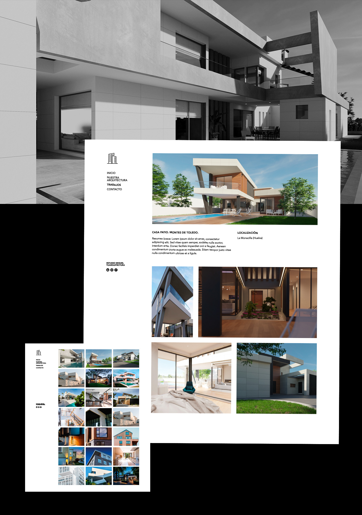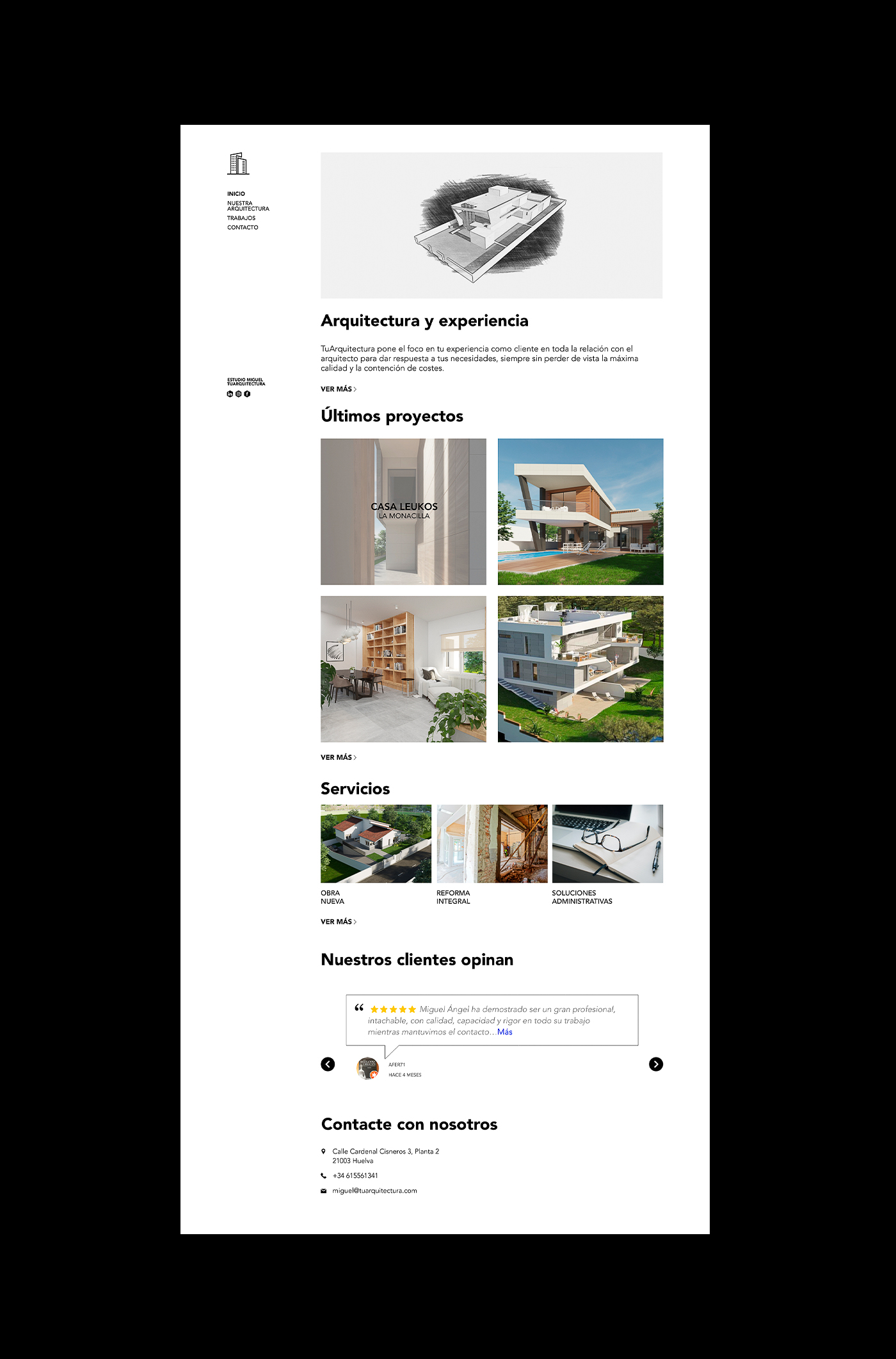 diseño web para el estudio migueltuarquitectura. acorde con la estética con la que él mismo diseña sus construcciones: líneas rectas, sencillas y elegantes.